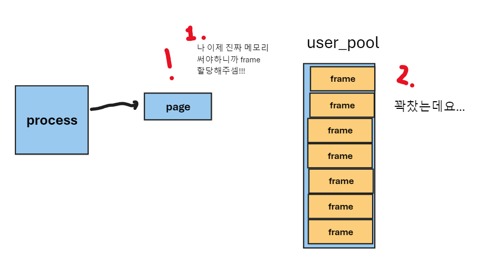 - 메모리가 꽉 차서 frame 할당 받는 것에 실패한다.