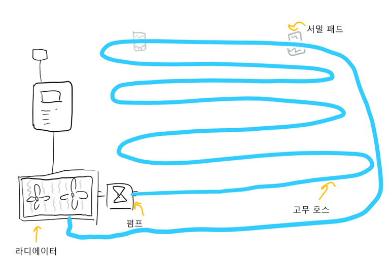 쿨링 시스템은 수냉 방식으로 컴퓨터 수냉 처럼 콘크리트 표면을 냉수로 식히는 방법을 생각했다.