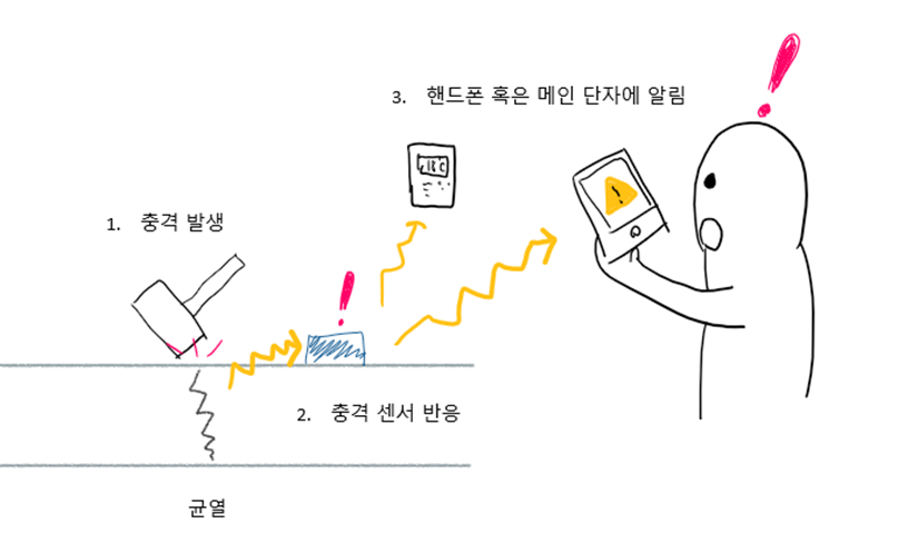 - 충격, 변위 센서 등을 활용해 균열 같은 하자 발생을 예방 할 수 있다. 모니터링이 가능하다.