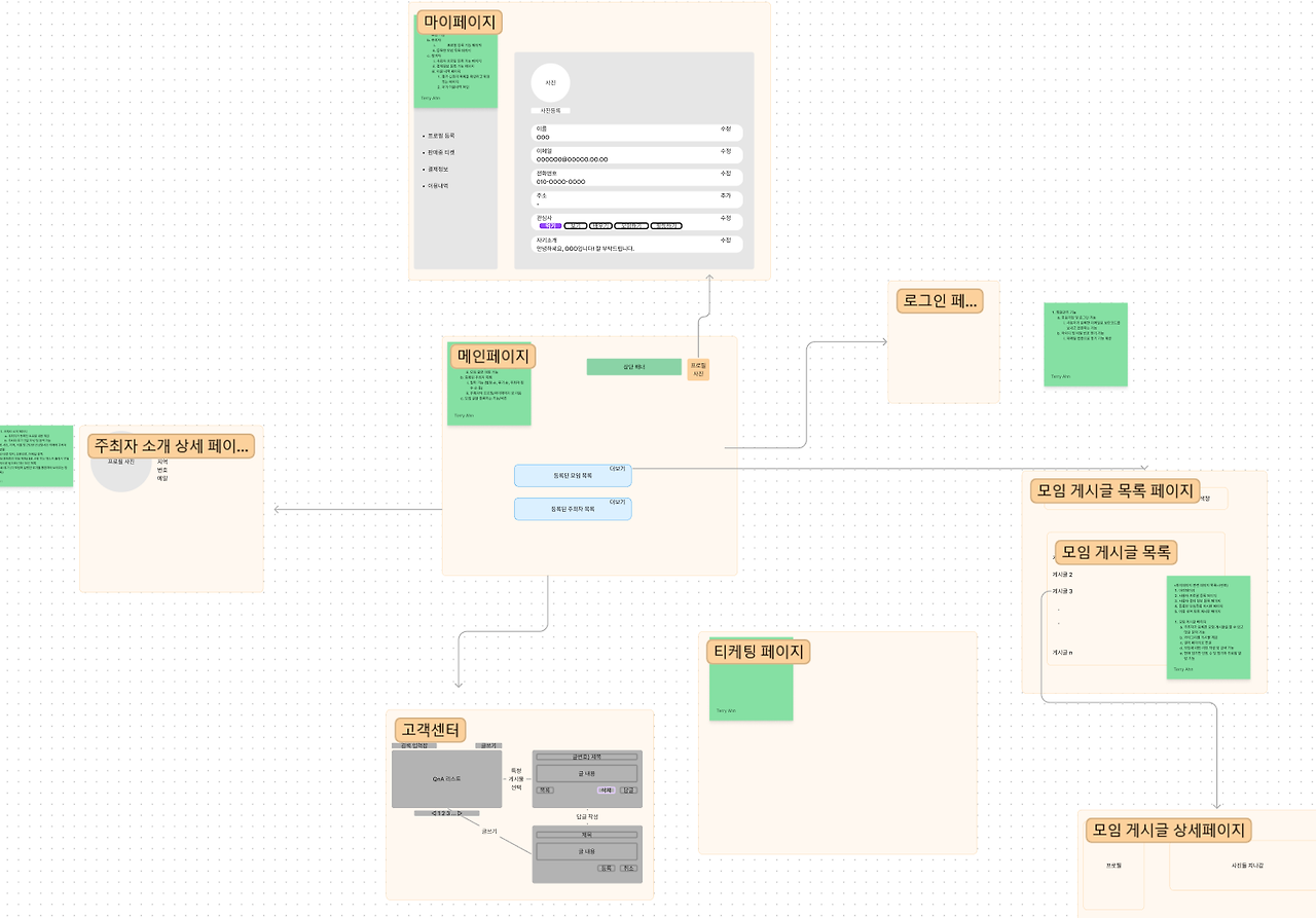 이런식으로 기획서에 작성했던 기능을 페이지별로 나눠서 목업을 만들고