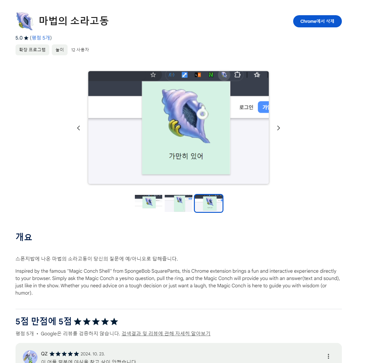 스토어 등록 사진 chrome 웹 스토어 다운로드 링크 : 마법의 소라고동