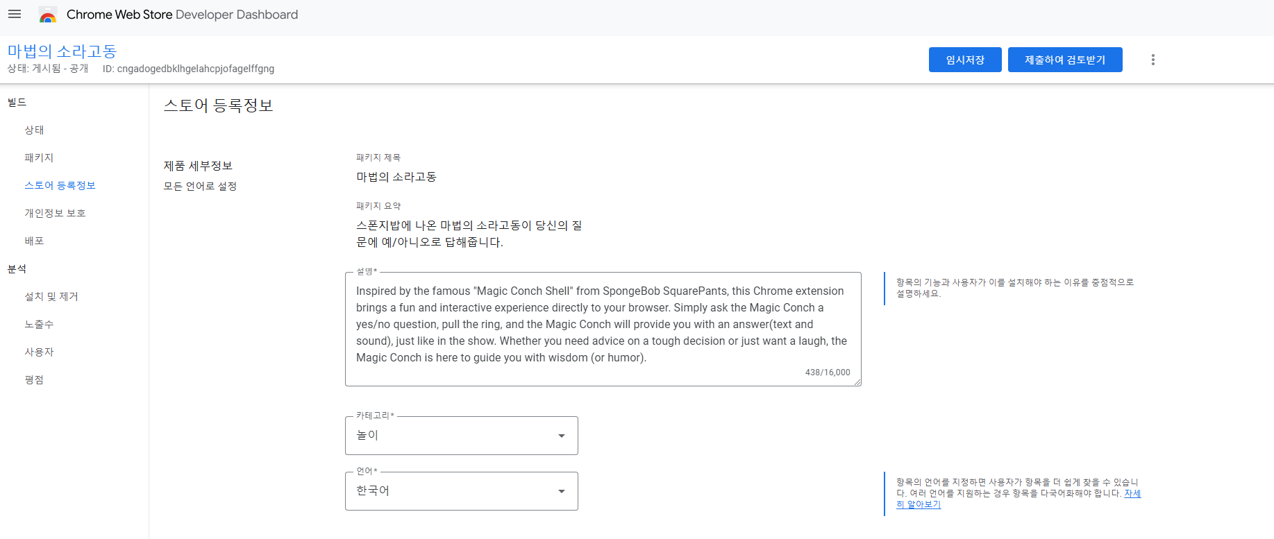 1. 크롬 확장 프로그램 출시하기 [마법의 소라고동]Projects/ToyProject 2024. 12. 5. 19:15